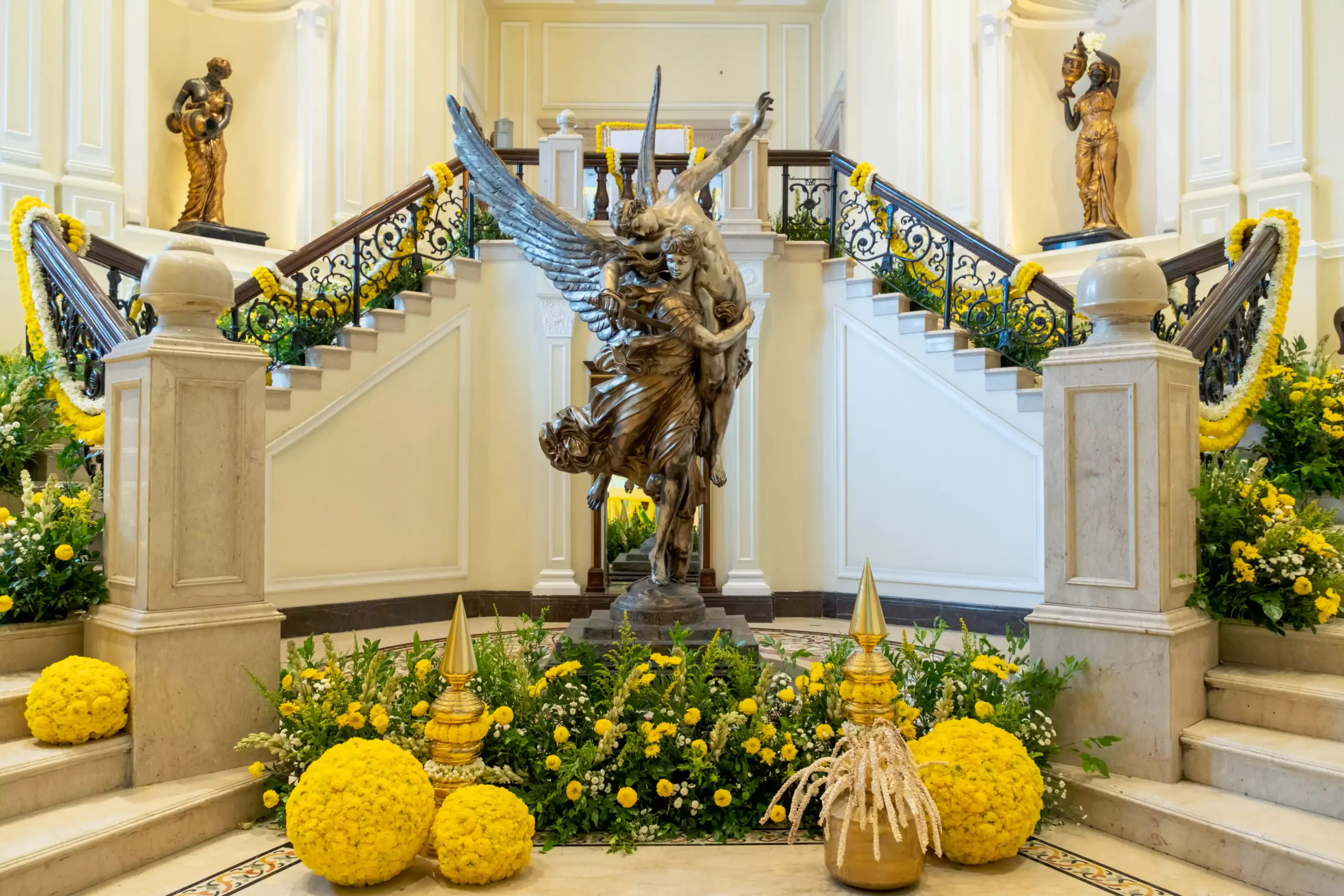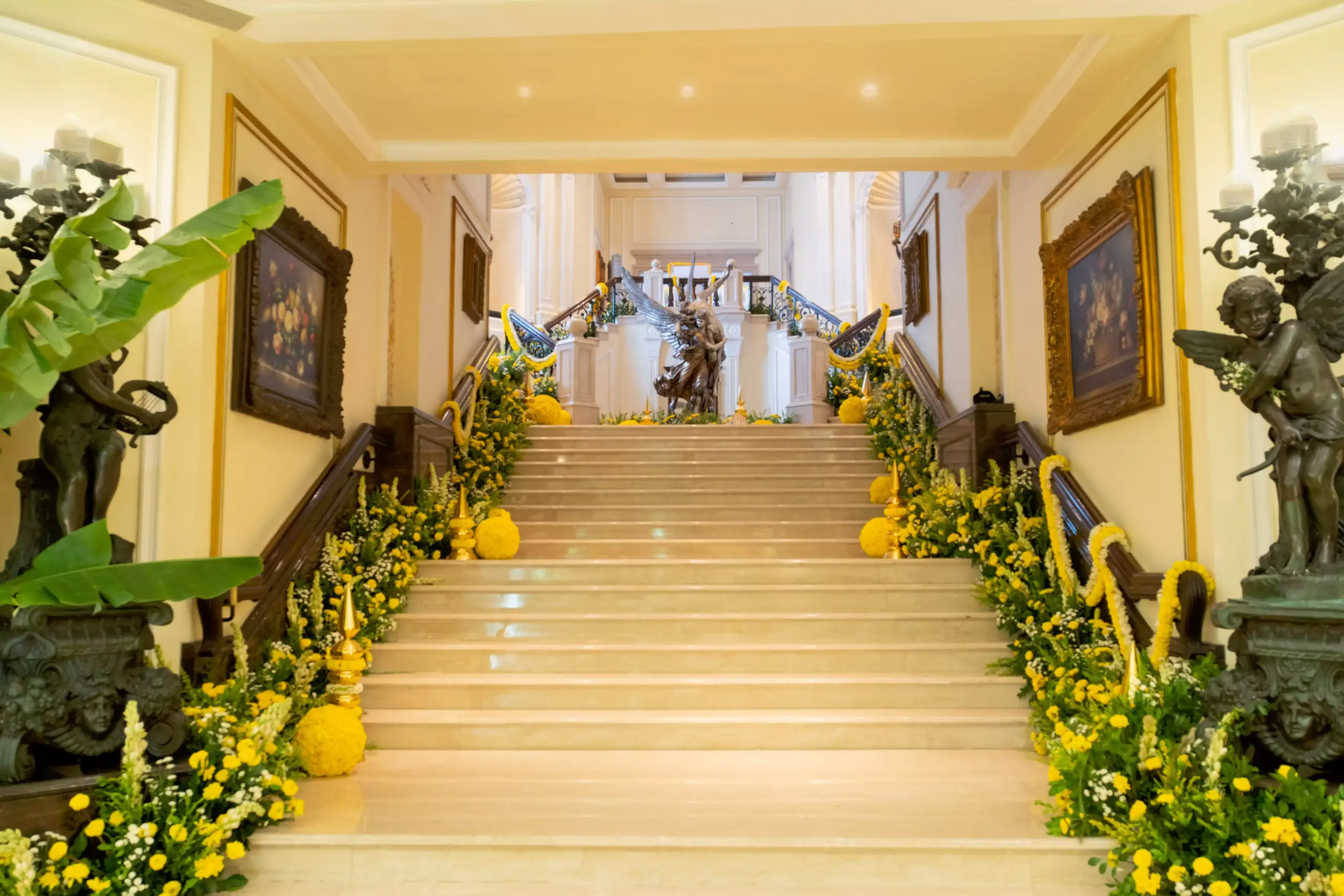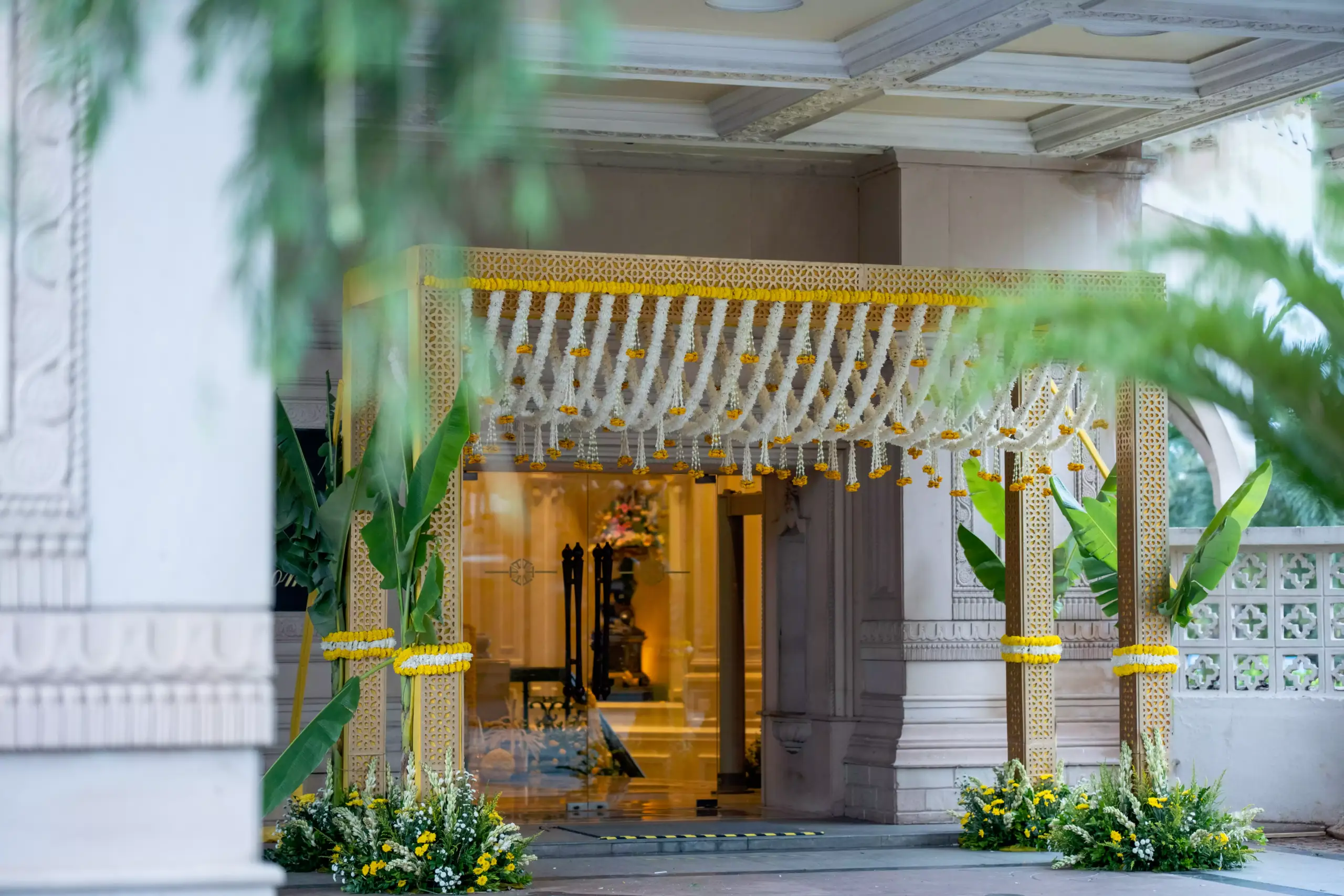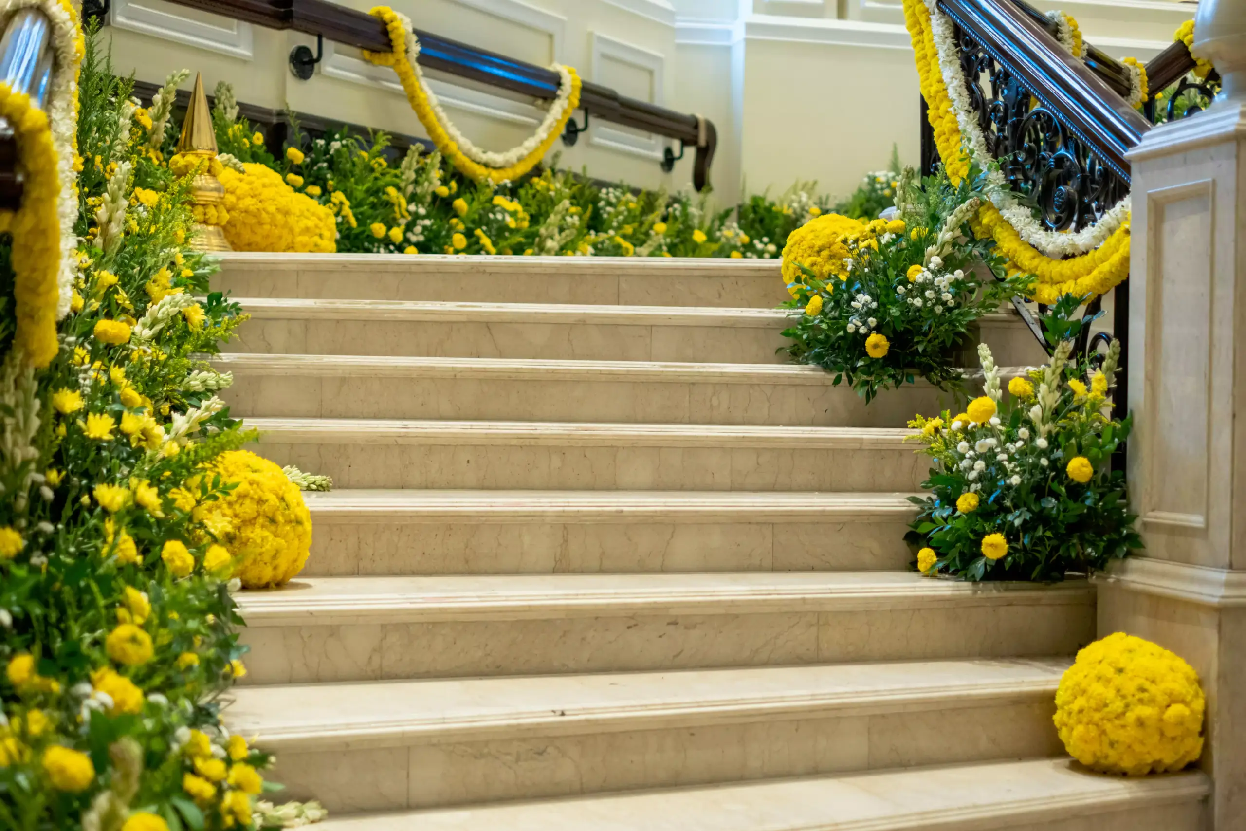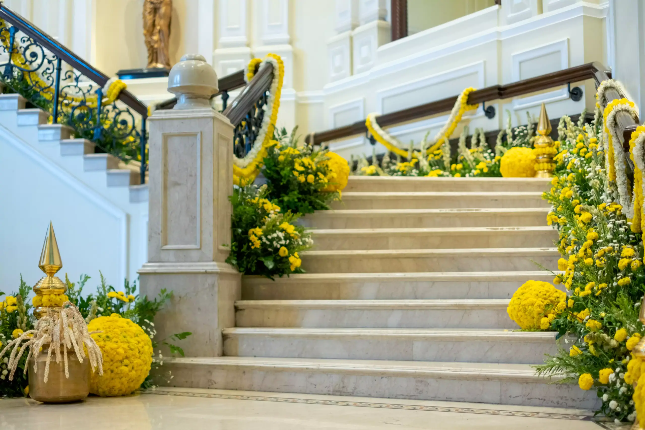 A soft yellow palette met timeless tradition in Aishwarya & Achyuth’s intimate engagement. With brass accents, coconuts, and floral hangings, the space echoed heritage; softened by pastels, steeped in soul.