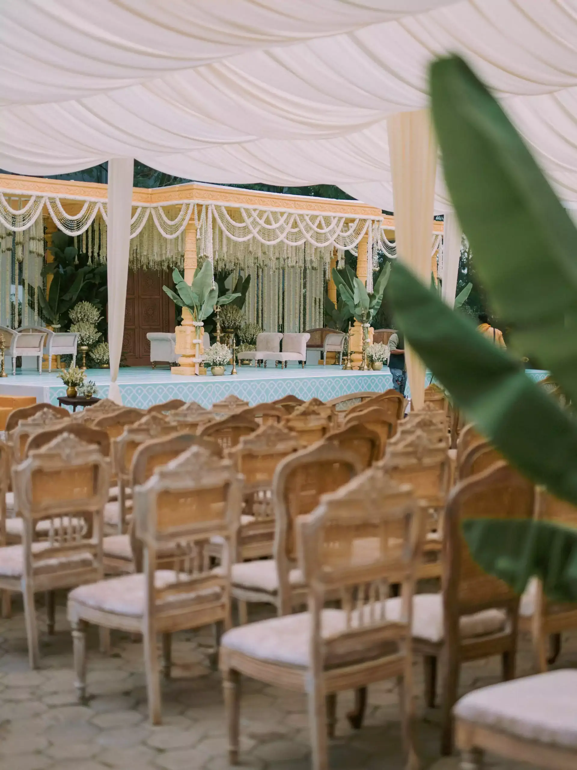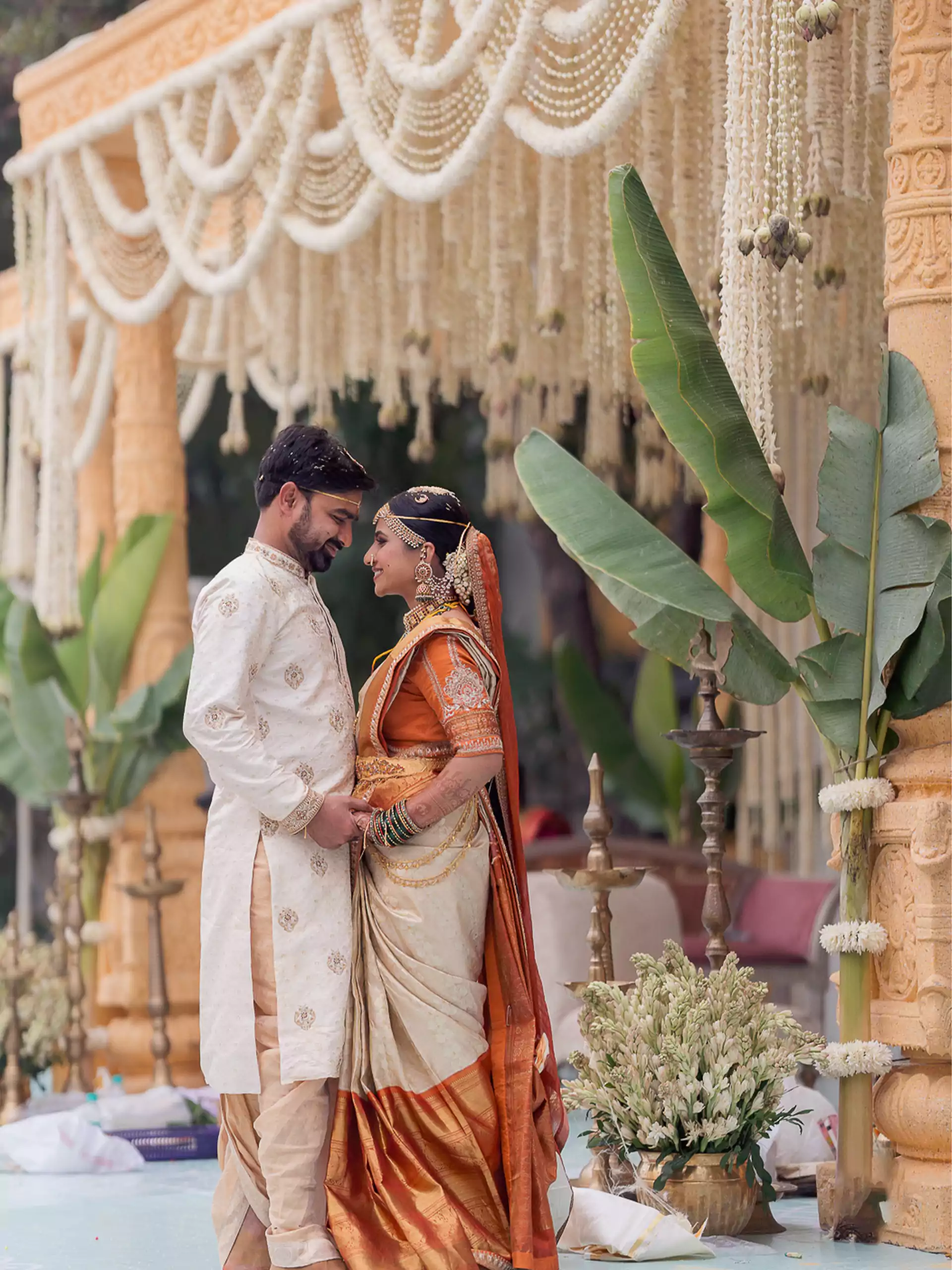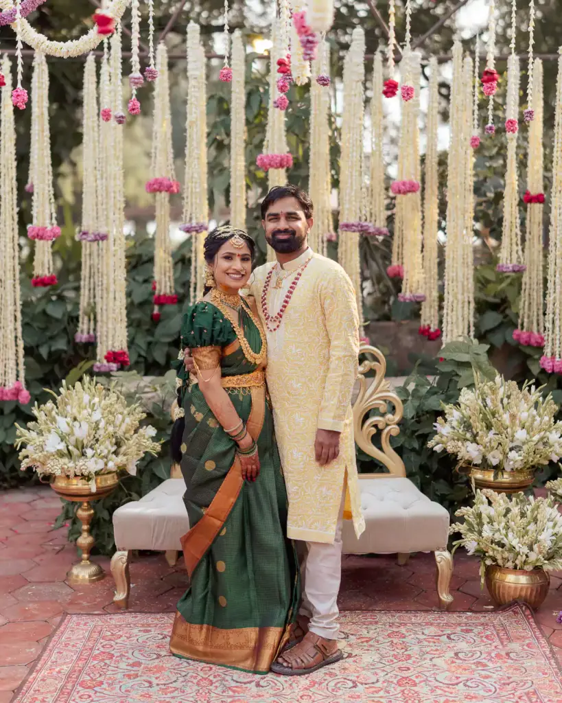 A Homecoming of the Heart.They returned from afar to wed beneath South India’s open skies. A sandalwood mandap adorned with banana leaves, brass, and tube roses stood fragrant and proud, surrounded by soft pastels and even softer emotions.