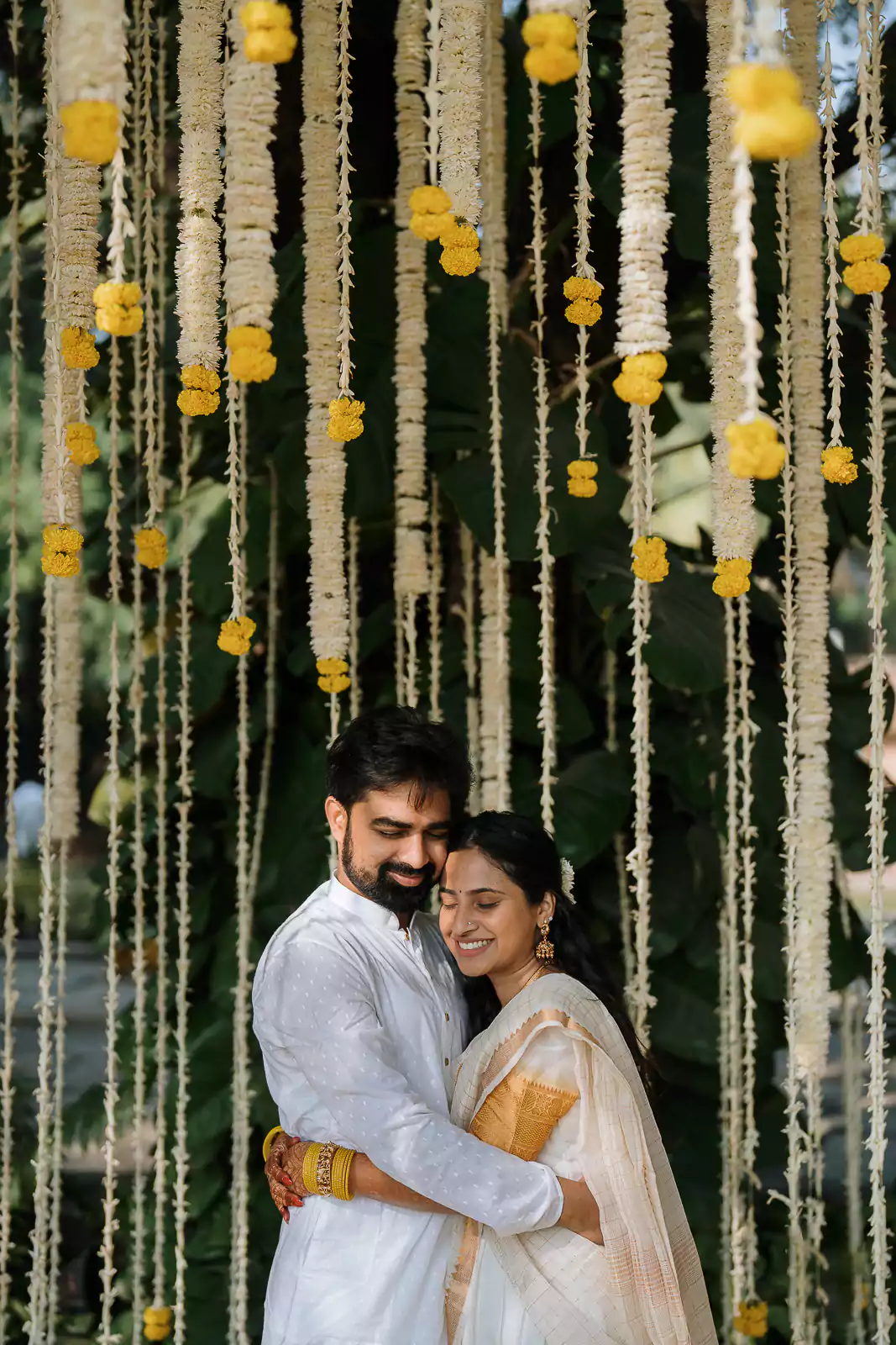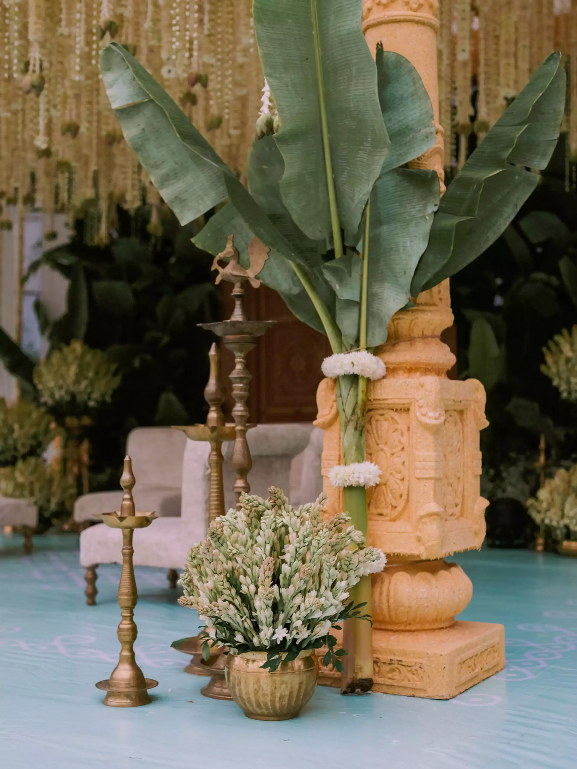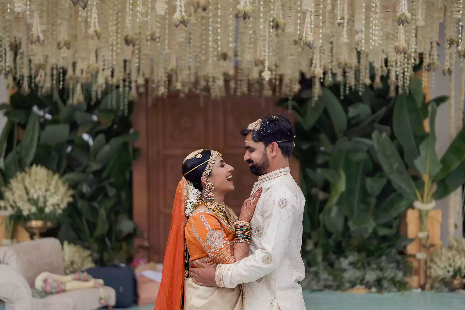 A Homecoming of the Heart.They returned from afar to wed beneath South India’s open skies. A sandalwood mandap adorned with banana leaves, brass, and tube roses stood fragrant and proud, surrounded by soft pastels and even softer emotions.