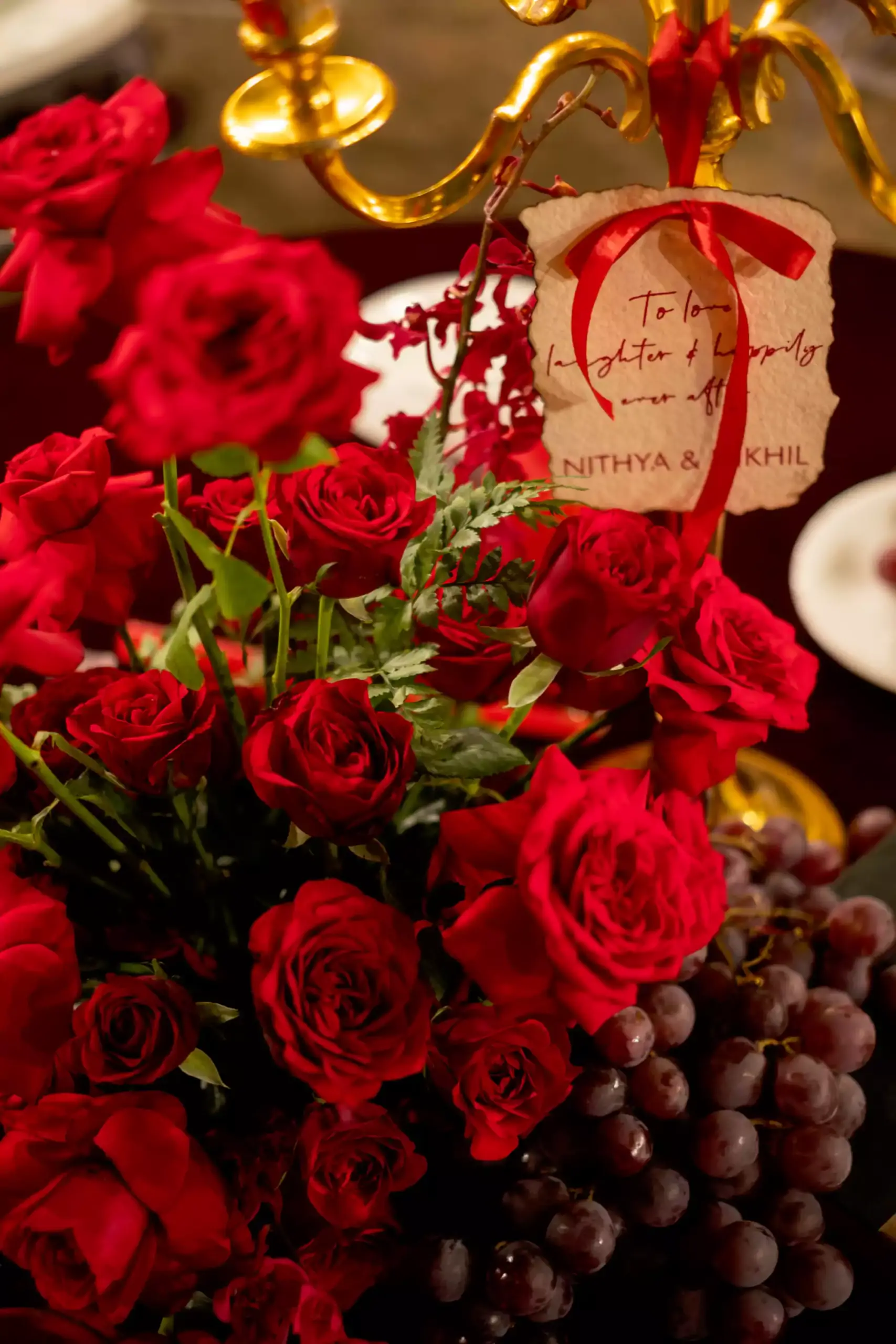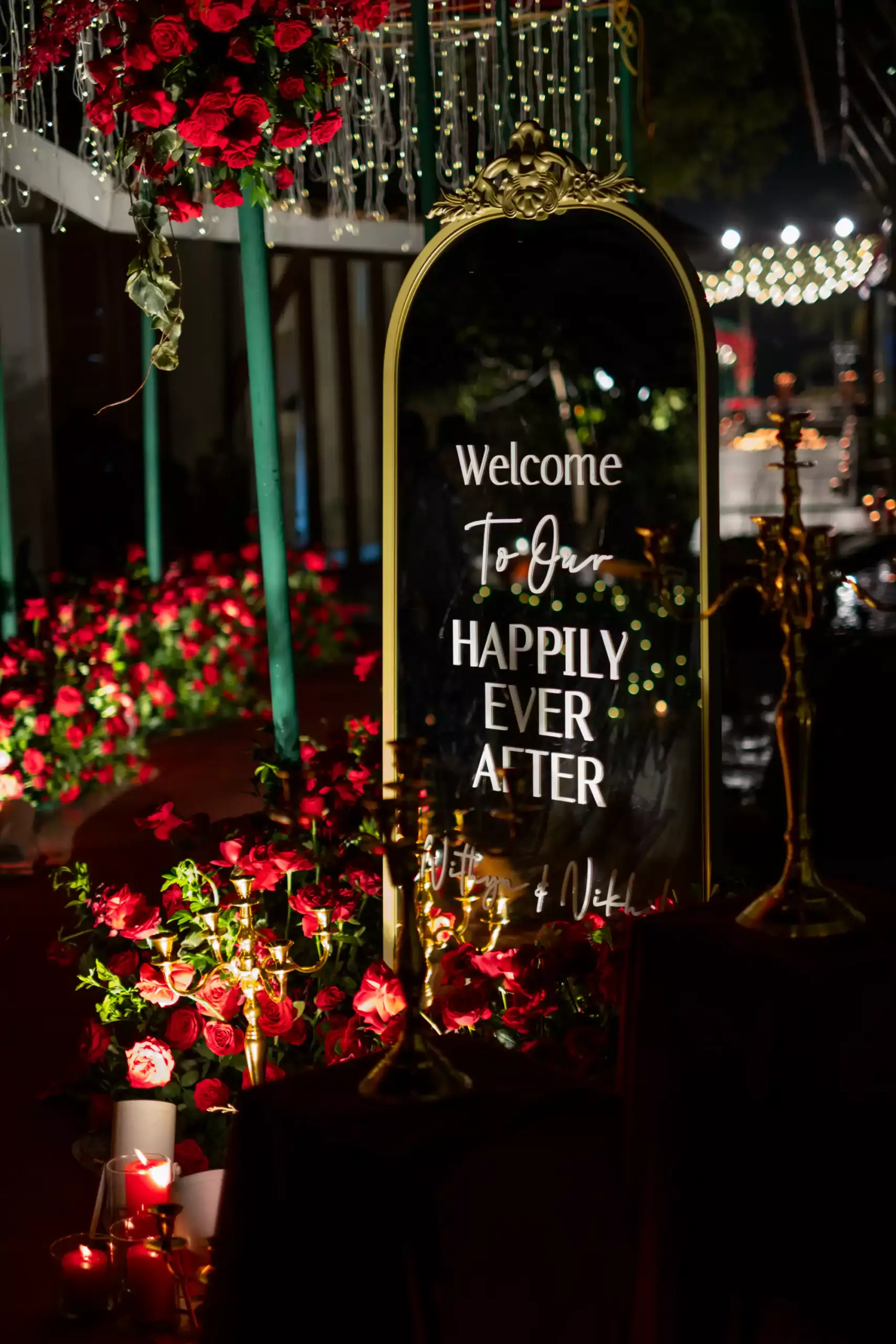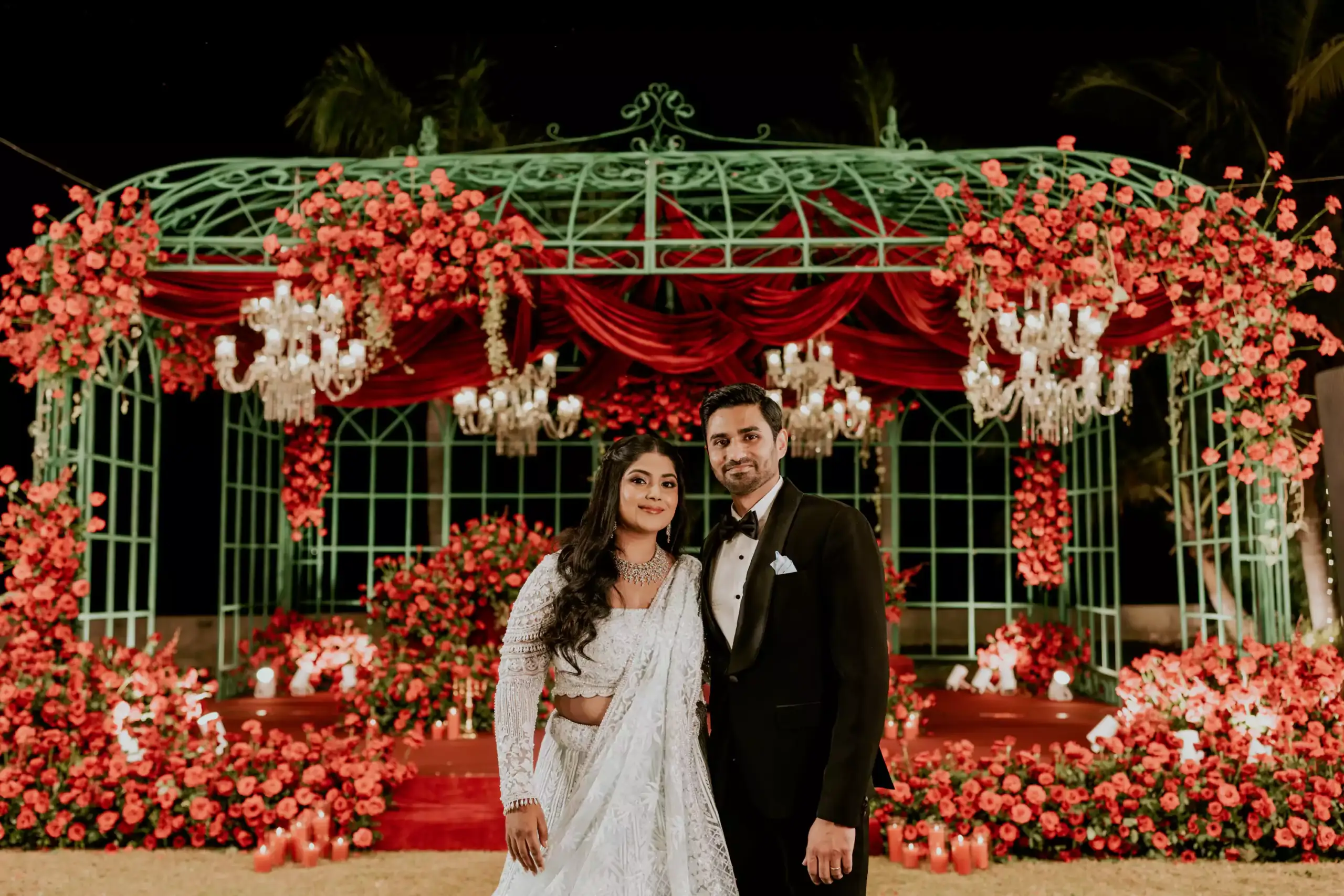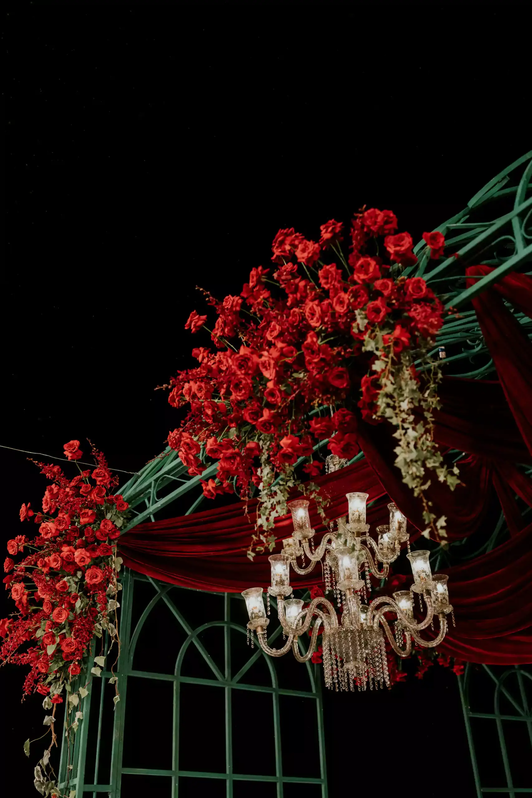 Inspired by the couple’s magical first meeting in London during Christmas, this reception recreated the warmth of that winter night with vintage elegance, deep reds, forest greens, twinkling lights, and an abundance of blooms. A romantic nod to their new beginnings, reimagined into a timeless celebration.